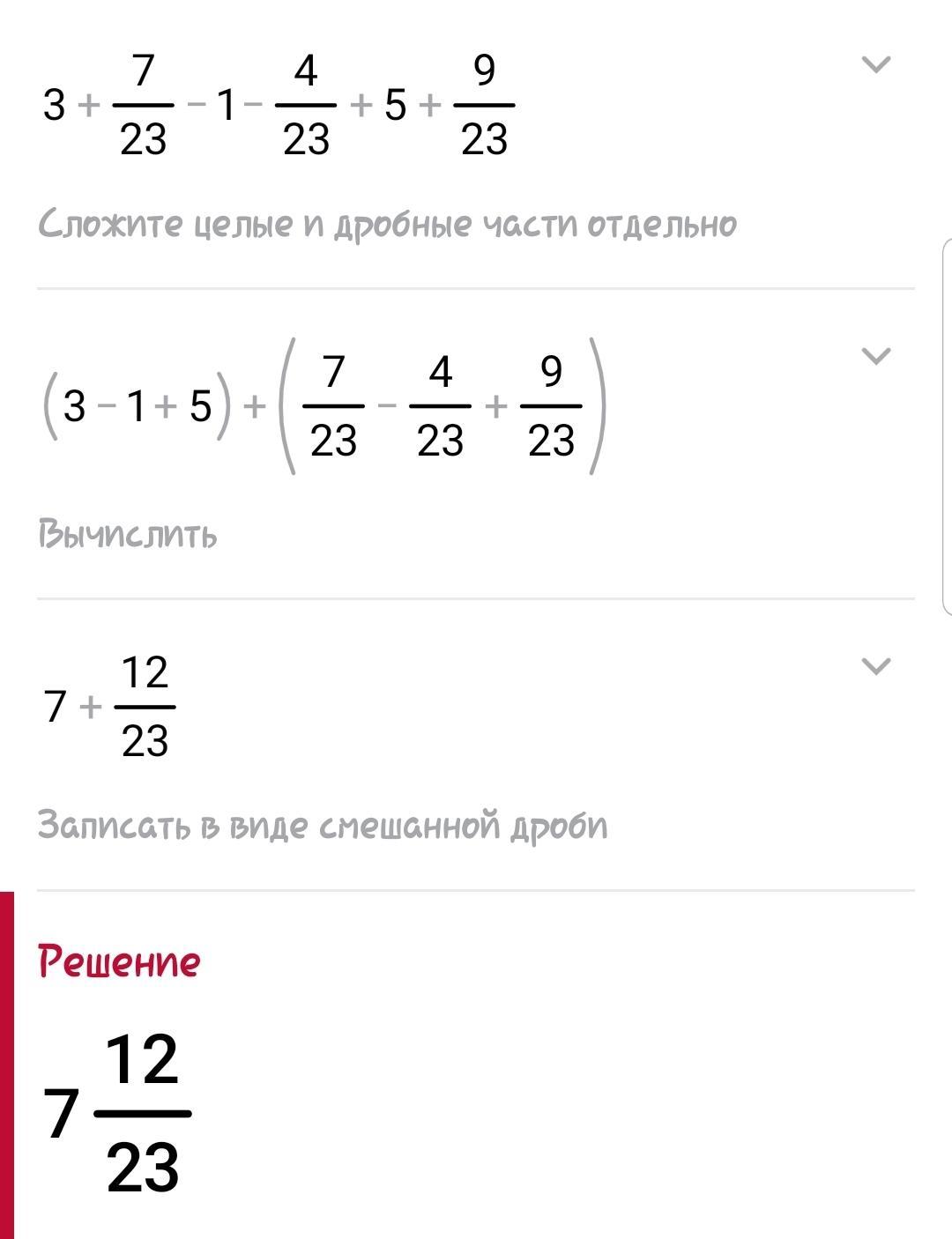 Пошаговое объяснение:1 действие: 3/7/23-1/4/23=2/3/23