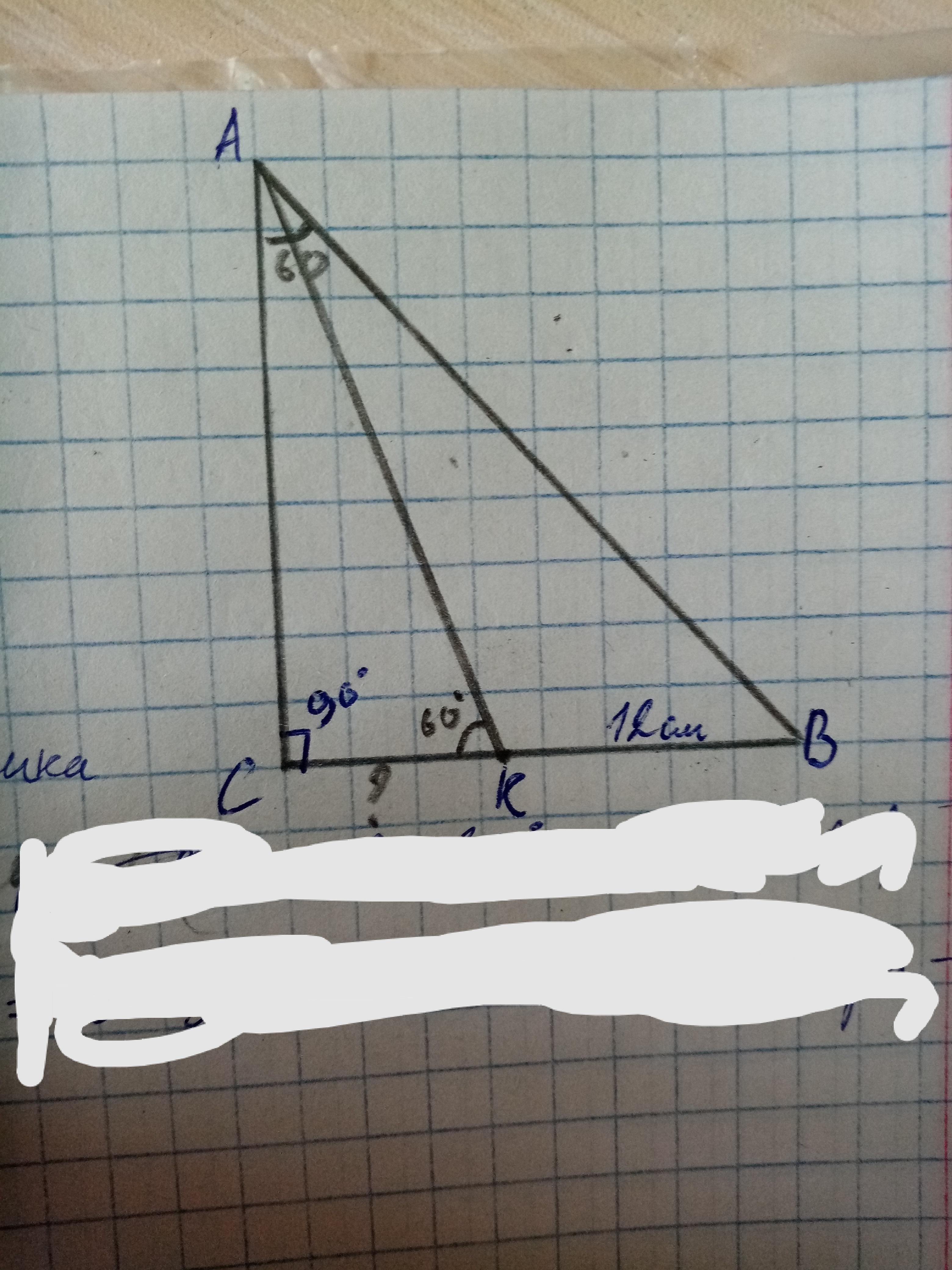 Дано:угол С=90°;угол АКС=60°; КВ=12СМ;угол САВ=60°