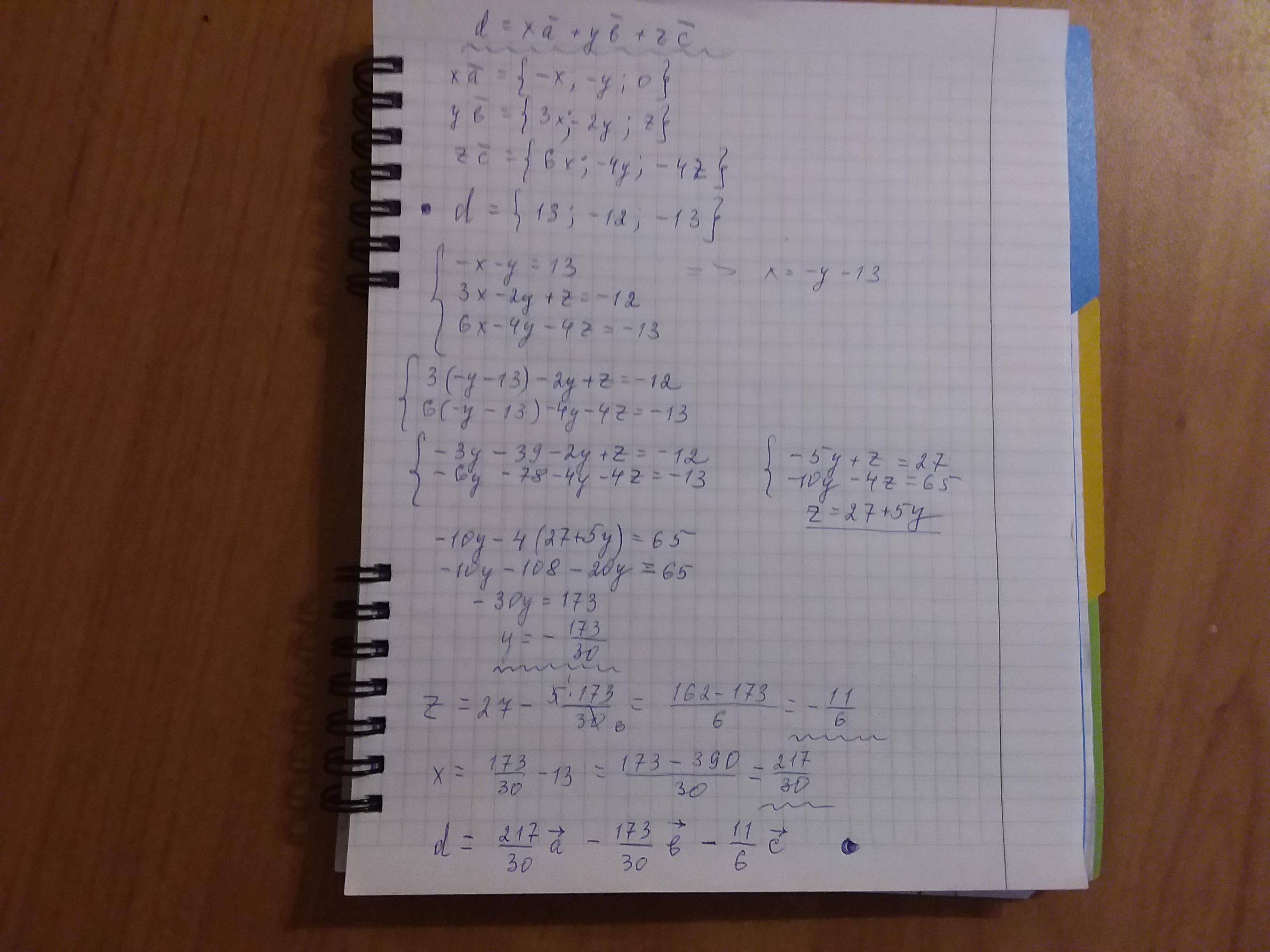 СДЕЛАЮ ОТВЕТ ЛУЧШИМ Даны три некомпланарных вектора: а(-1;-1,0) b(3;-2;1) с(6;-4;-4) Разложите вектор d(13;-12;-13) по этим некомпланарным векторам