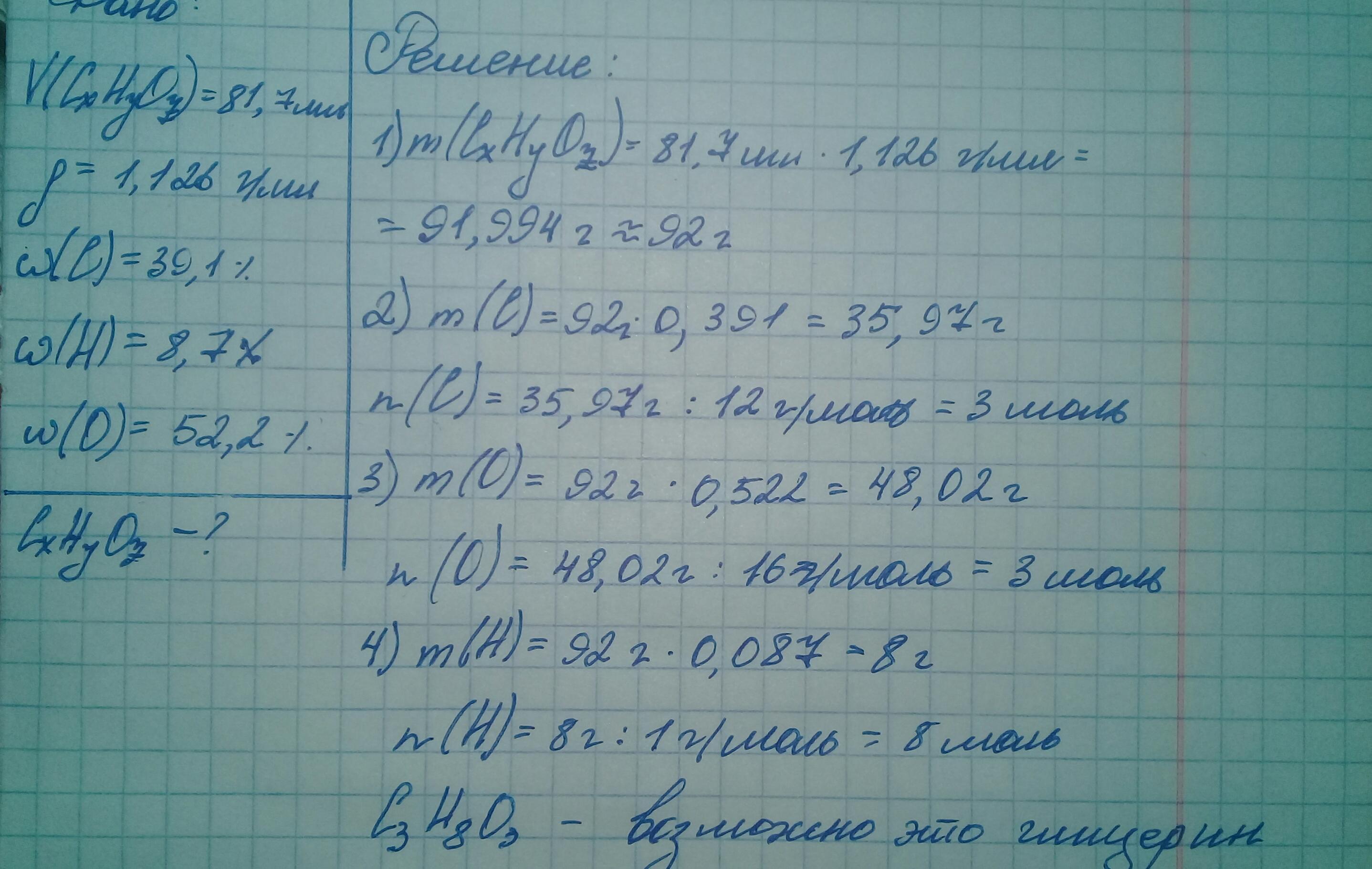 Решение вот: C3H8O3. Возможно это глицерин, но в ответ лучше не писать.