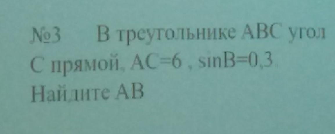 sinВ=АС/АВ , 0,3=6/АВ, АВ=6:0,3=20