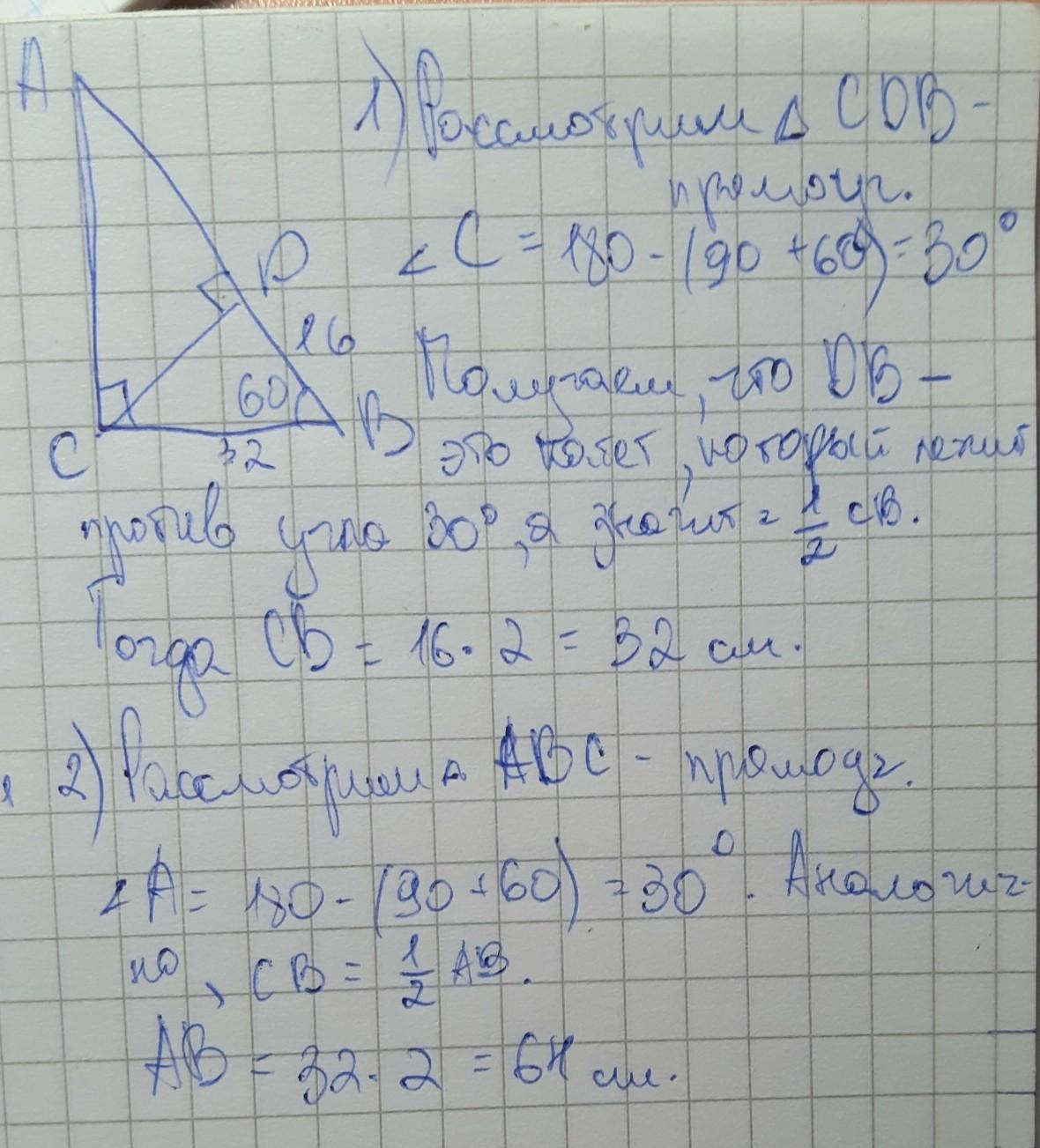 1.Введите с клавиатуры результат вычислений. Дано: ∆АВС – прямоугольный, ∠В = 60°, ∠С = 90°, BD = 16 см. Найдите AВ.