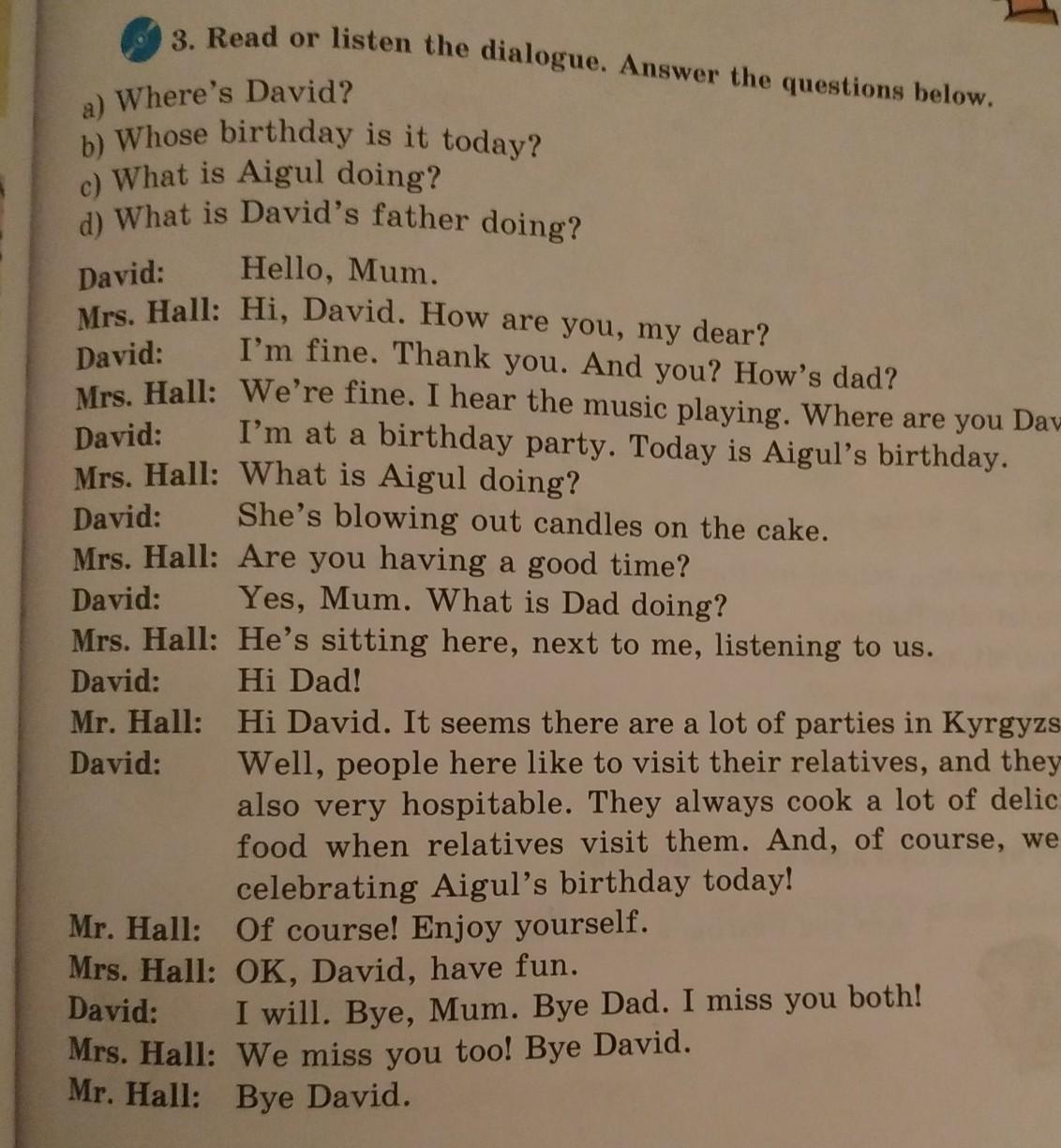 3. Read or listen the dialogue. Answer the questions below.