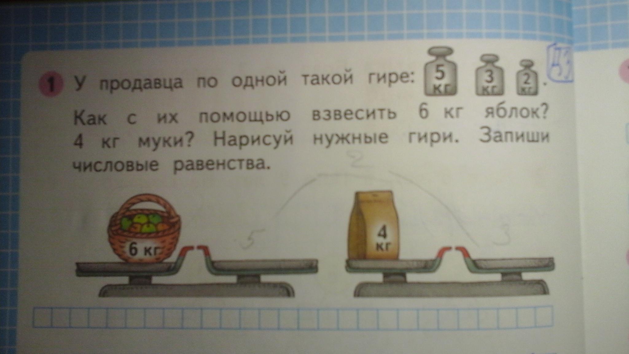 к корзине добавить два килограма, а на противоположную сторону три и пять