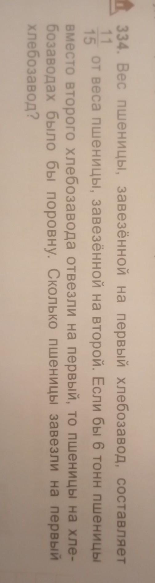 Пусть х тонн пшеницы завезли на второй хлебозавод, тогда на первый завезли 11х/15 тонн пшеницы. По условию, если со второго хлебозавода отвезли на первый 6 тонн, то пшеницы стало бы поровну. Значит на первом стало (11x/15+6) тонн, а на втором (х-6) тонн. Составим и решим уравнение: