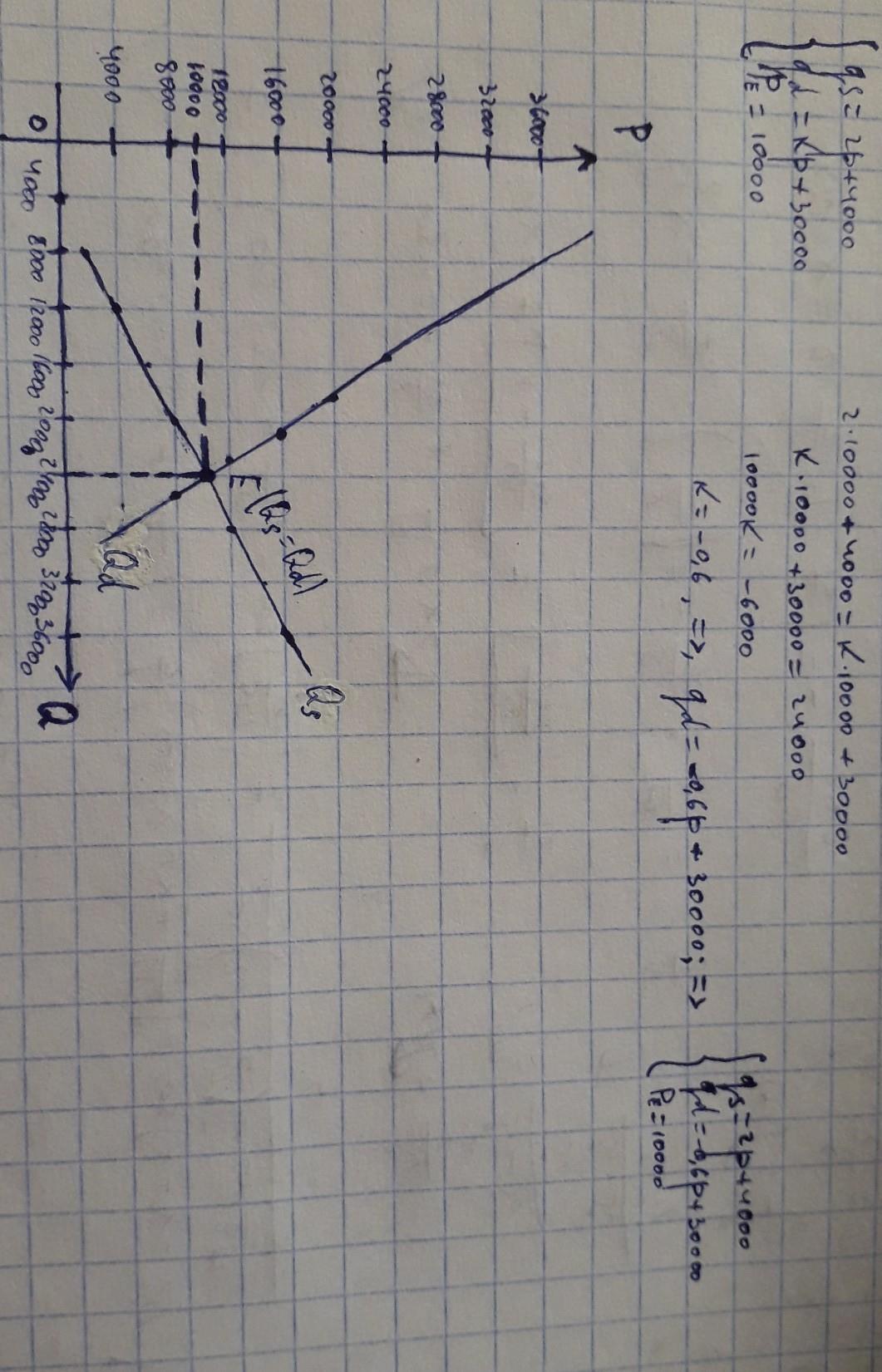 Если функция спроса qd = kp + 30000 и равновесная цена товара