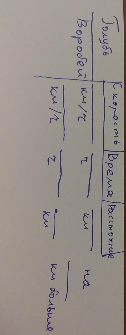 Средняя скорость голубя 73 км/4, а воробья 39 км/4, на сколько больше километров пролетит голубь за 2 ч, чем воробей? Что куда вписать?