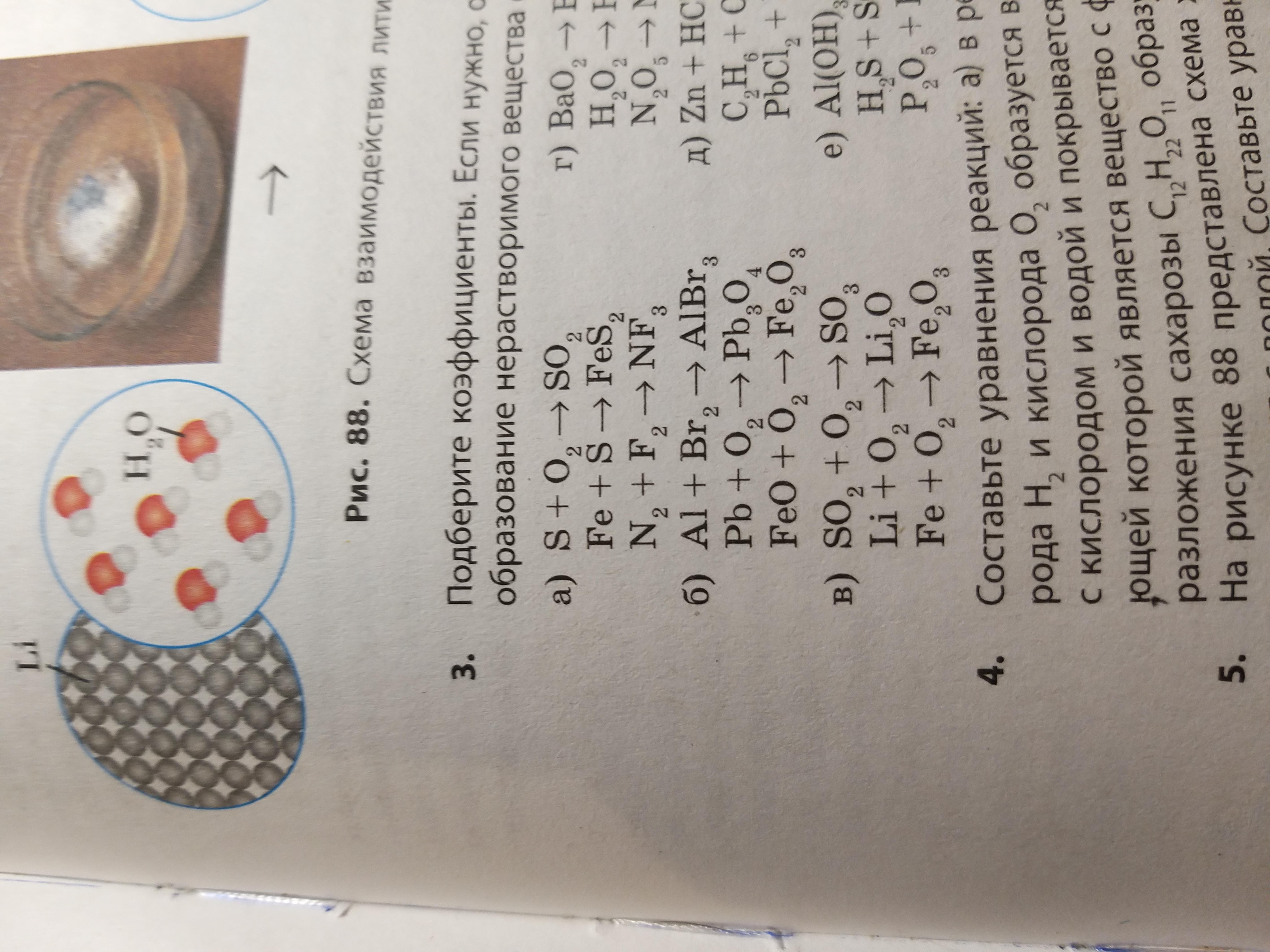 а) S+O2=SO2. Fe+2S=FeS2. N2+3F2=2NF3. Б) 2Al+3Br2=2AlBr3. 3Pb+2O2=Pb3O4. FeO+O2=Fe2O3. В). 2SO2+O2=2SO3. 4Li+O2= 2Li2O. 4Fe+ 3O2= 2Fe2O3.