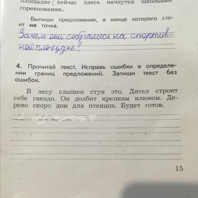В лесу слышен стук. Это дятел строит себе гнездо. Он долбит крепким клювом дерево. Скоро дом для птенцов будет готов.