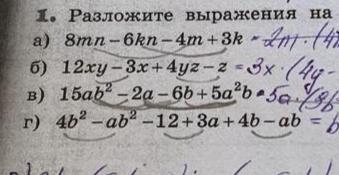 в) =5ab(3b+a)-2(a+3b)=(3b+a)(5ab-2)