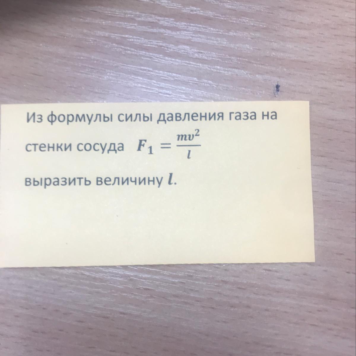 l равна отношению произведения массы m на квадрат скорости v и силы F