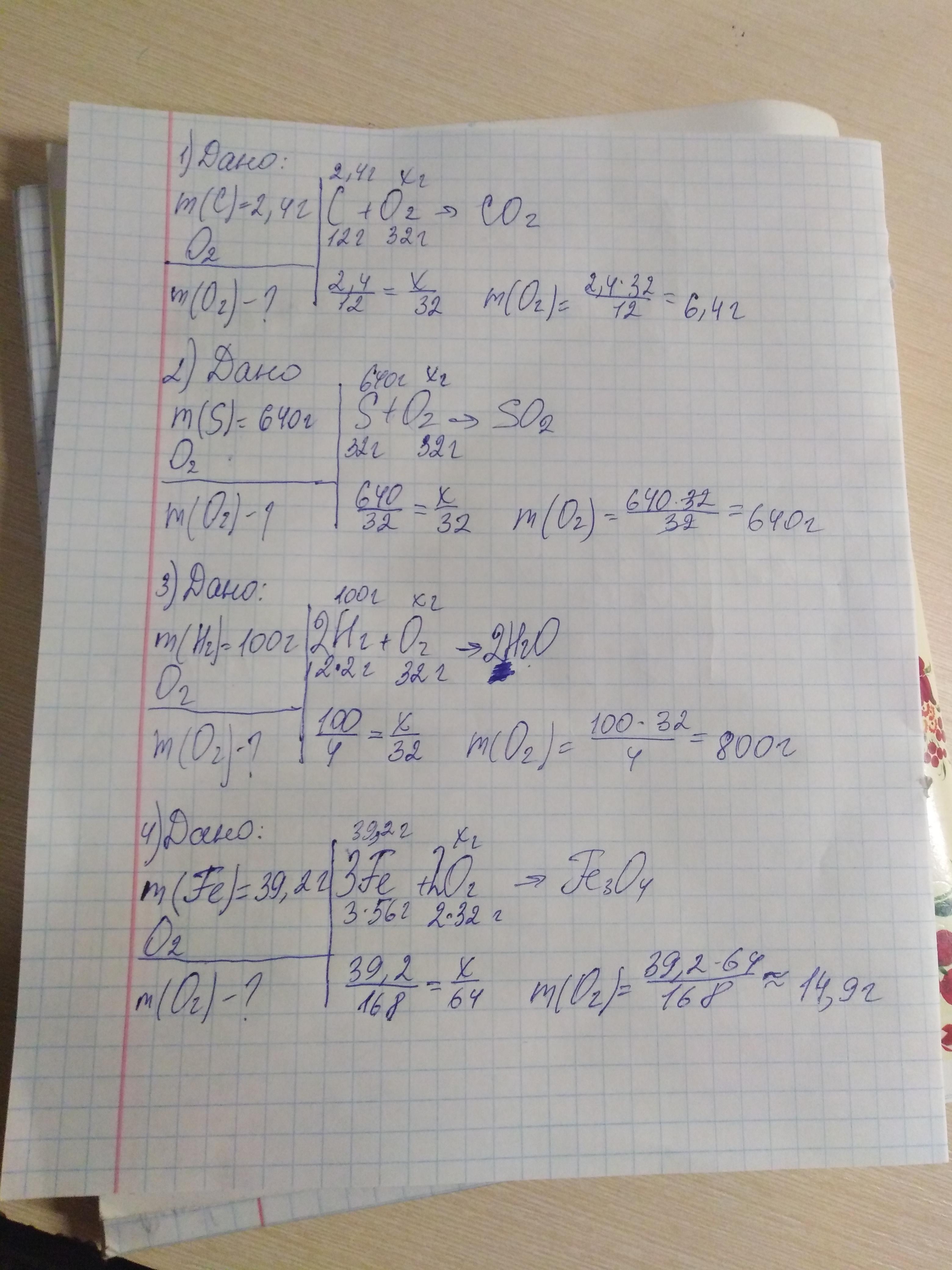 Рассчитайте, какая масса кислорода (в граммах) потребуется для реакции с: