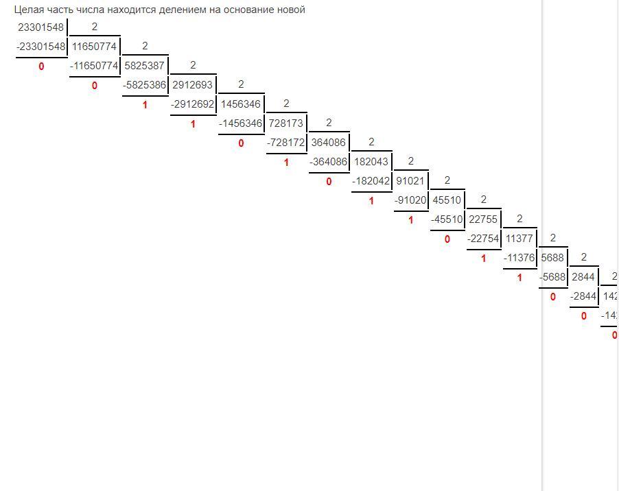 Переведем 23301548₁₀ в двоичную систему счисления: