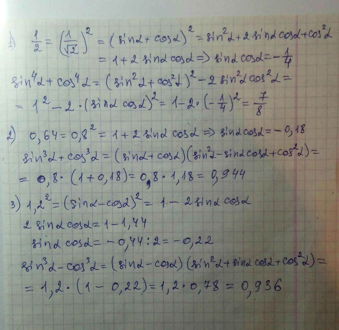 если sinα+ cosα =0.8 то (sinα+ cosα)² = 0.64