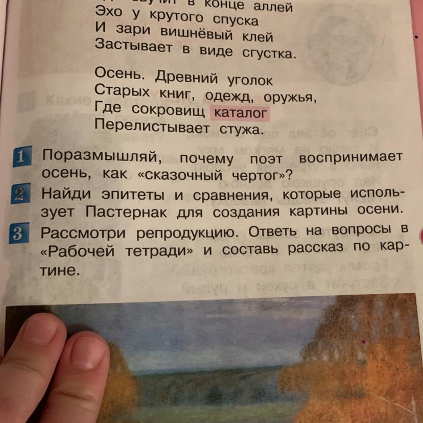 1. Поэт воспринимает осень как сказочный чертог, потому что она так же великолепна, пышно и разнообразно убрана. Этот чертог богат, потому что весь покрыт золотом, «позолотой небывалой», украшен «золотым обручем» липы, «золочеными рамами»