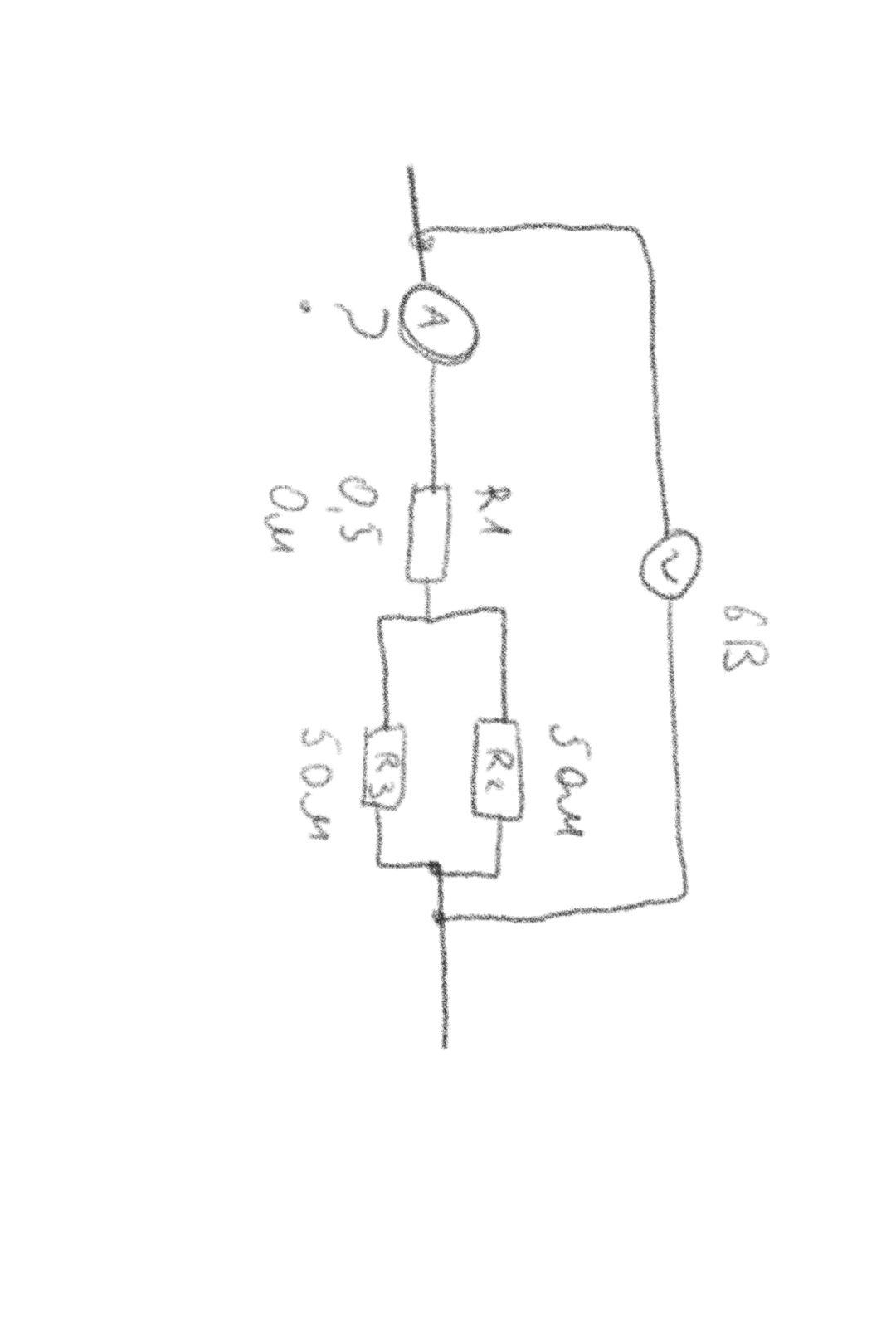 Сопротивление цепи равно 0.5 + (1/5+1/5)^-1=0.5+2.5=3 Ом