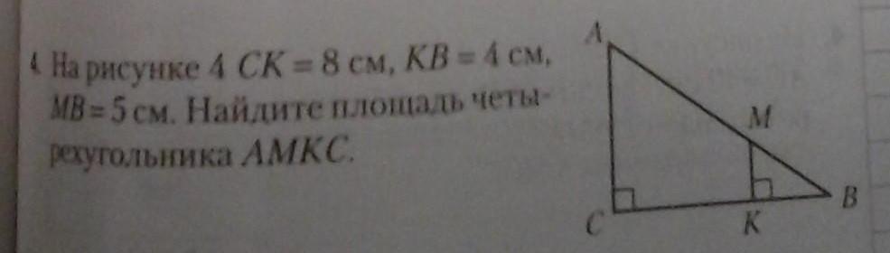 Искомый четырехугольник AMKC - прямоугольная трапеция с основаниями АС и МК и высотой СК, т.к. (АС || МК)⊥СВ.