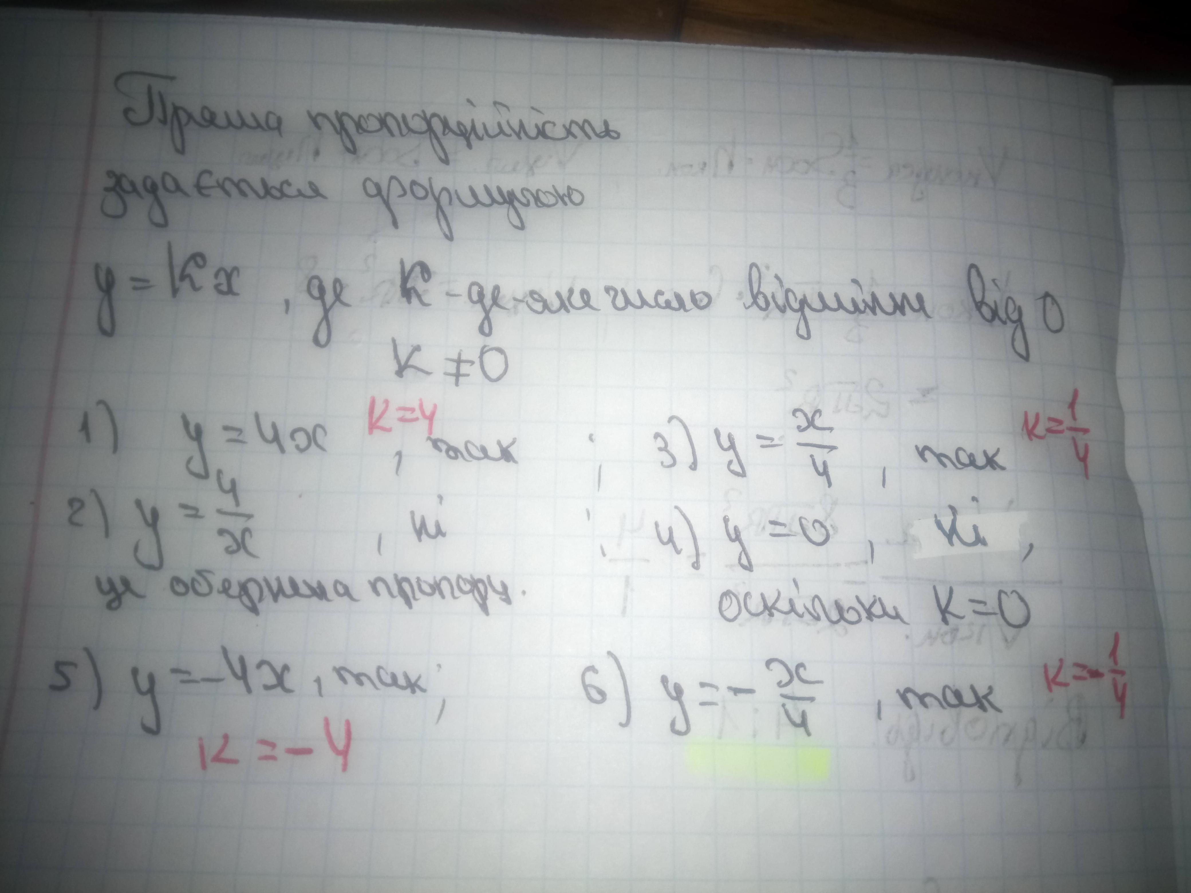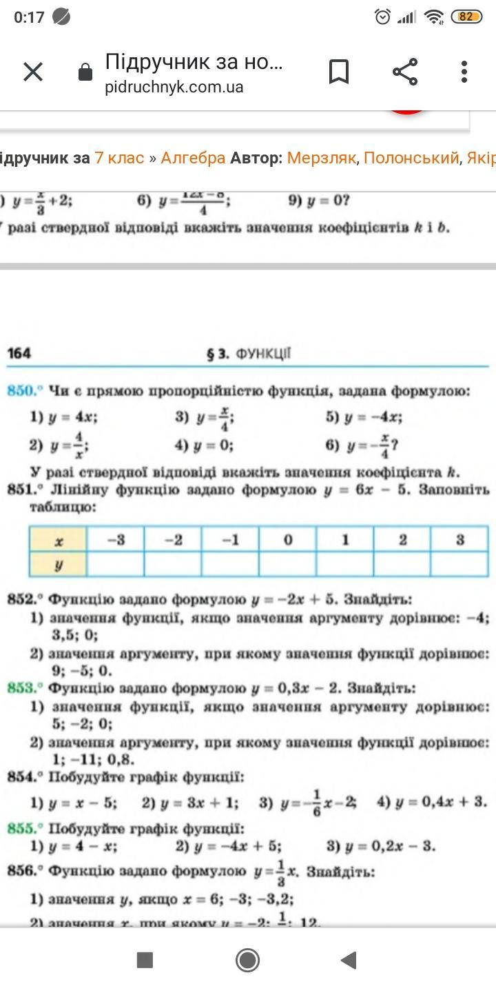 Чи є прямою пропорційністю функція, задана формулою:1)y=4x;2)y=4x;3)y=x4;4)y=0;5)y=-4x;6)y=-x4; (завдання номер 850).