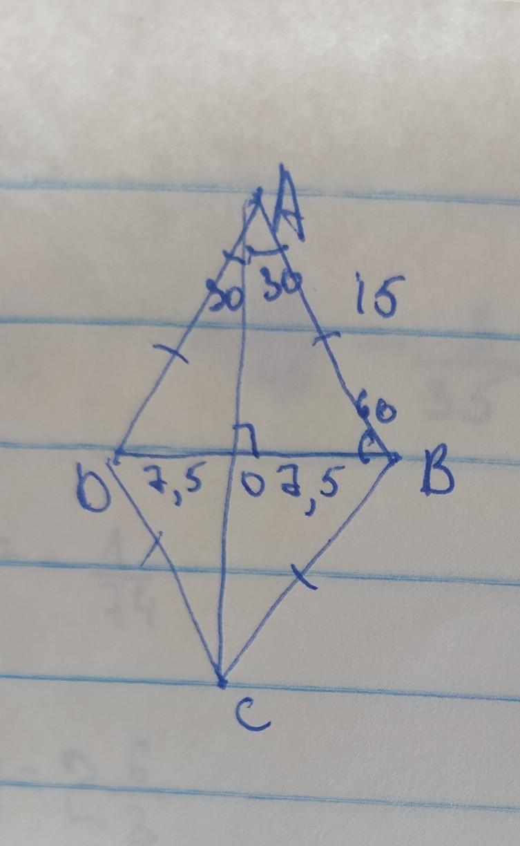 Сторона ромба дорівнює 15 см, а його гострий кут - 60* . Обчислити довжину меншої діагоналі ромба.