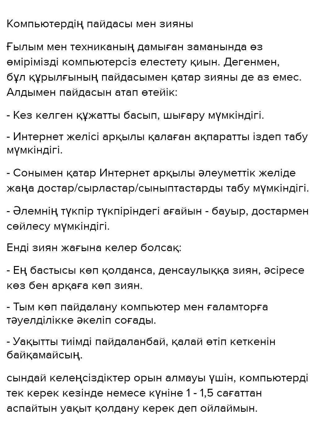 срочно переведите дам 20 балов Компьютердің пайдасы мен зияны