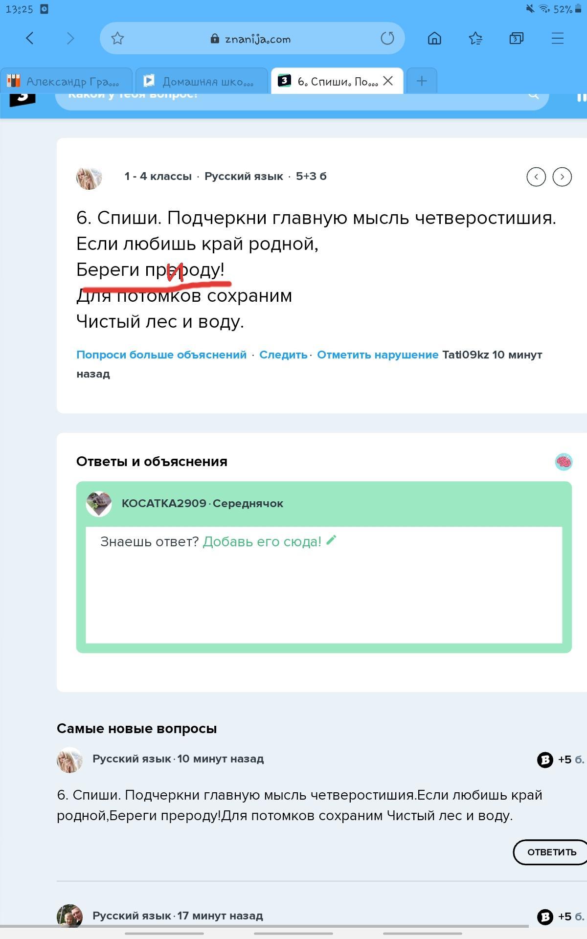 6. Спиши. Подчеркни главную мысль четверостишия.