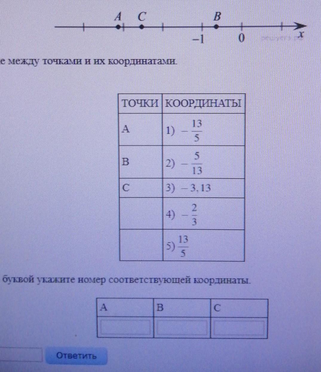 на координатной прямой отмечены точки a, B и C Установите соответствие между точками и их координатами