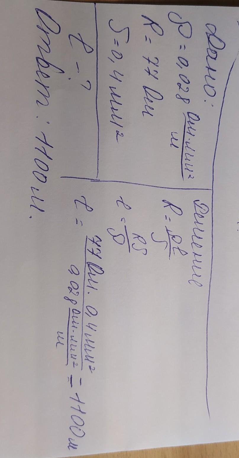 Обмотка реостата, изготовленная из алюминиевой проволоки, имеет сопротивление 77 Ом. Какой длины эта проволока, если площадь её поперечного сечения равна 0,4 мм²?