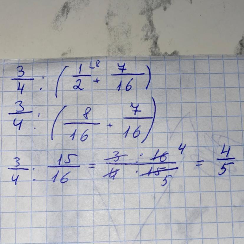 Потом 3/4 : 15/16 это тоже самое, что 3/4 • 16/15