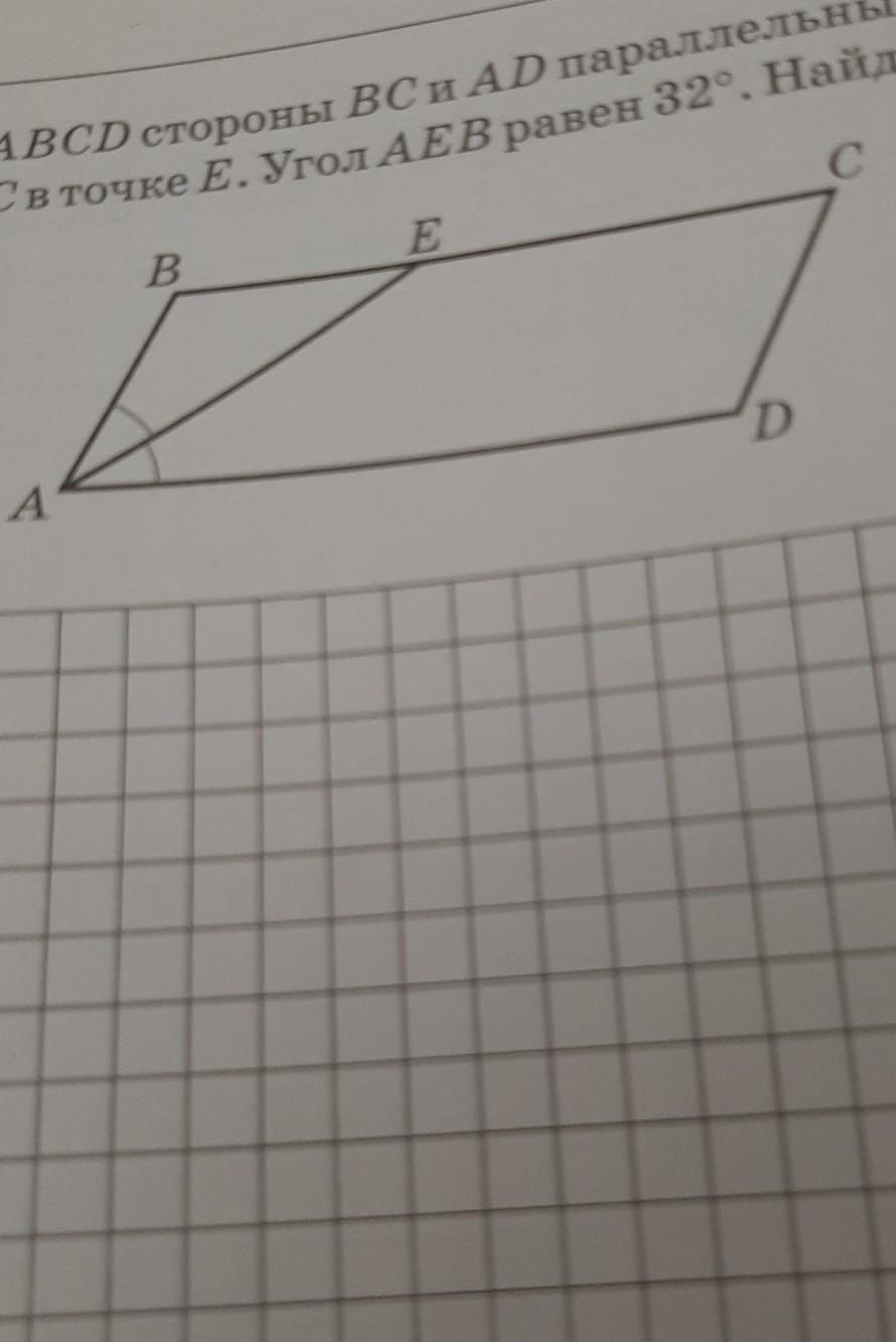 пересекает сторону ВС в точке Е. Угол АЕВ равен 32°. Найдите величину угла А.