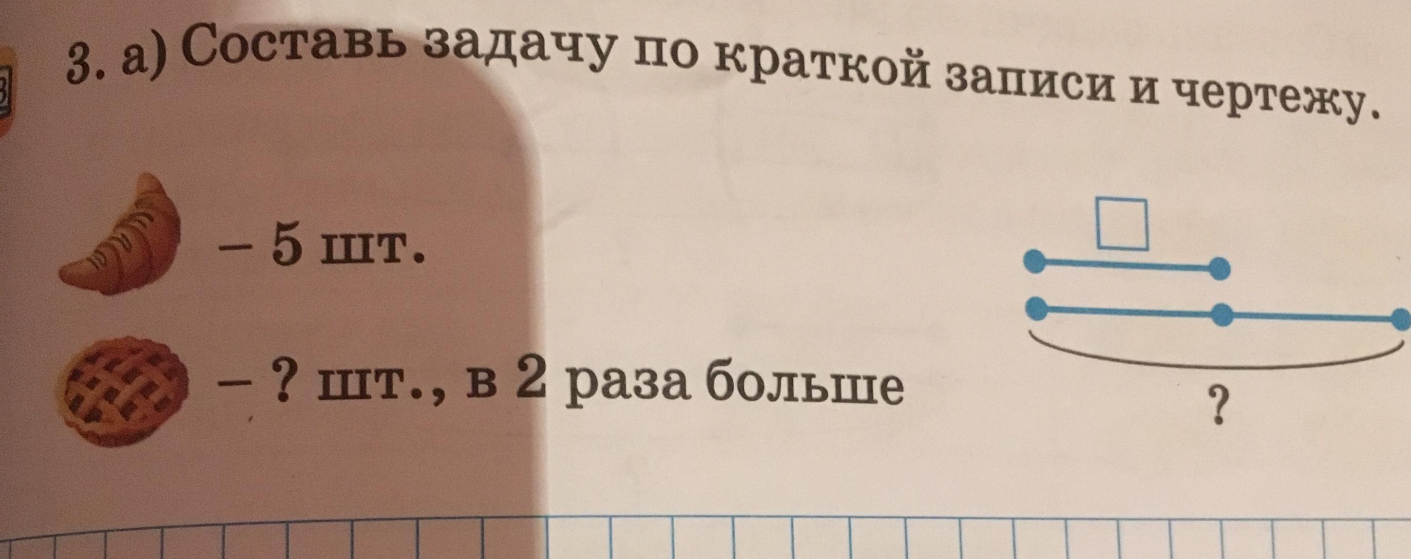 Мама сделала 5 круассанов и в два раза больше пирогов. Сколько всего она испекла?