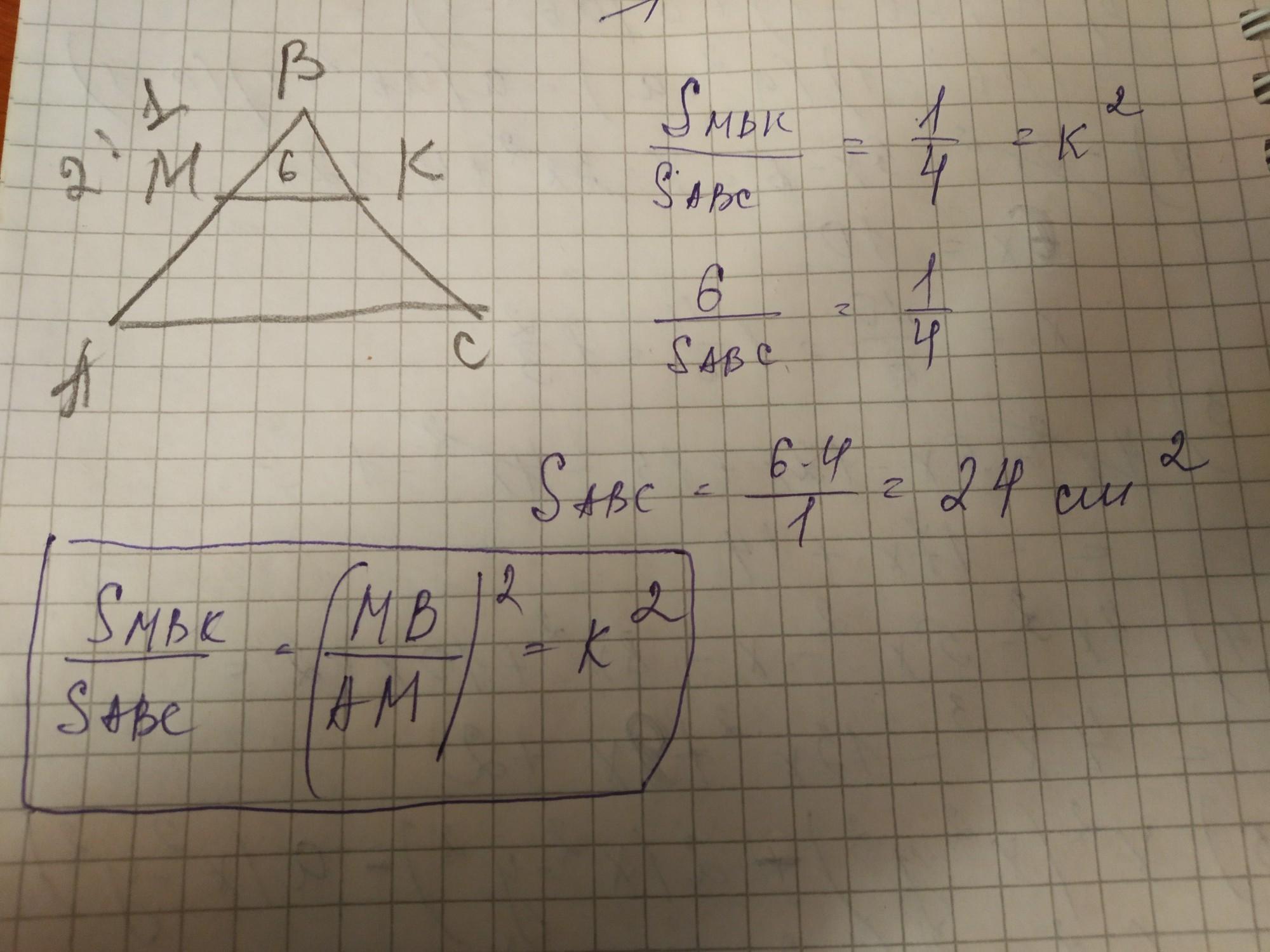 = 2:1, Smвк = 6 см². Найдите Ѕaвс: