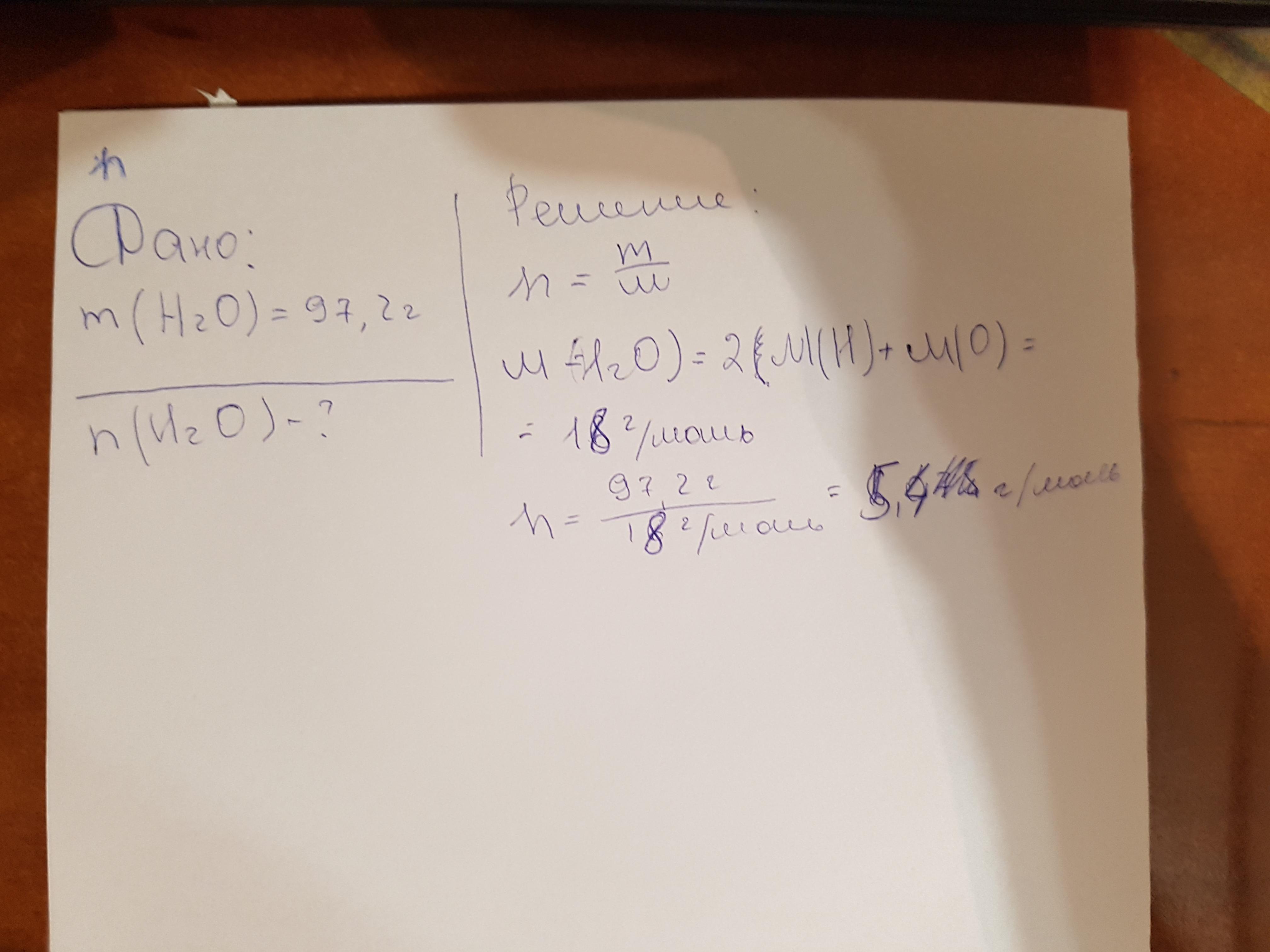 если не дано никакого химического уравнения, то Mr (H2O) = 18; m (H2O) = 97,2г; n = 97,2: 18 = 5,4 г/моль