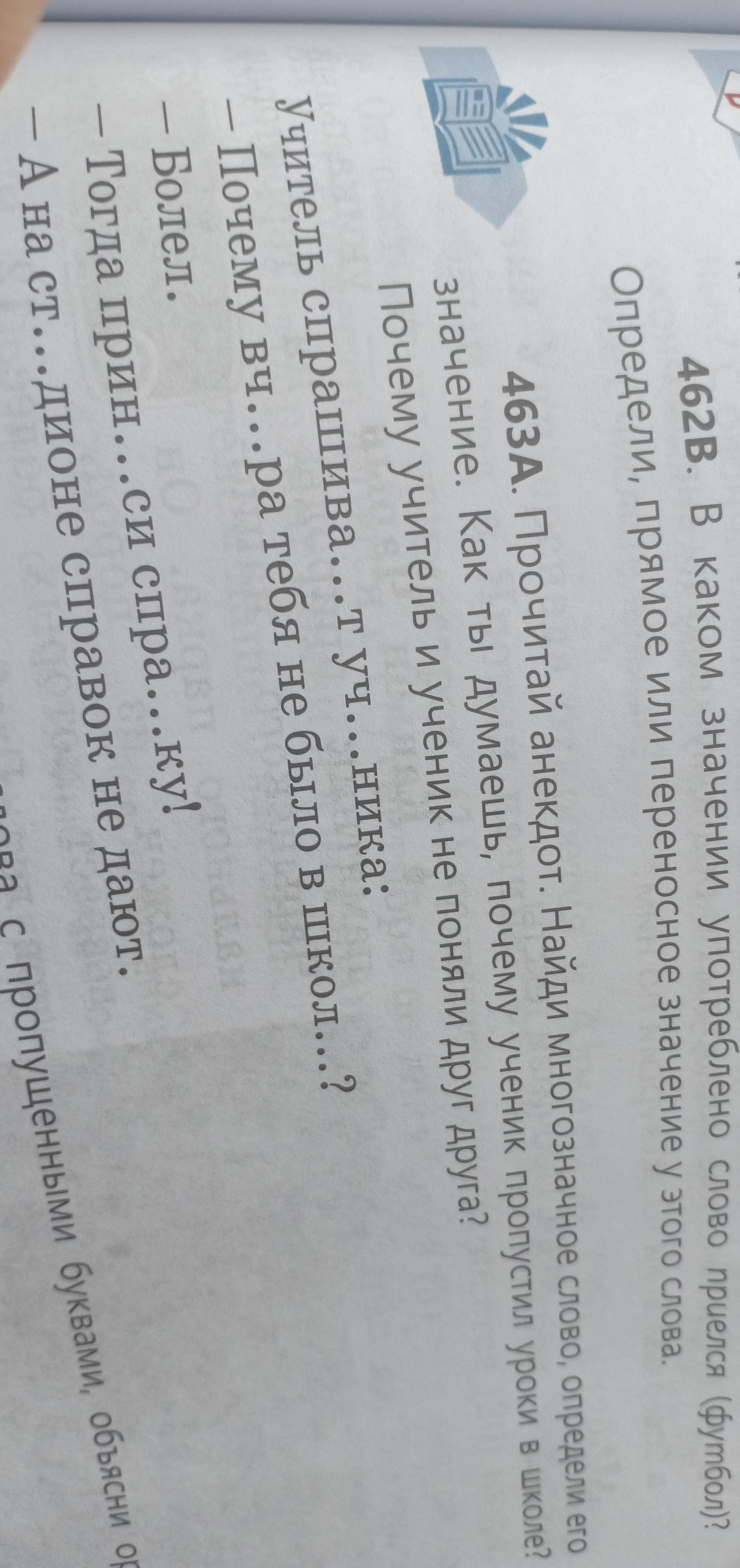 Ученик пропустил уроки потому что болел за какую либо команду. Учитель и Ученик не поняли друг друга потому что ученик не сказал как именно он болел