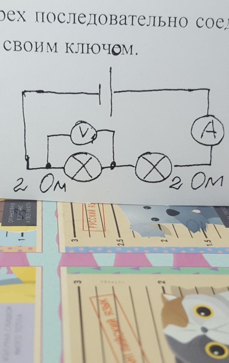 Ток в цепи одинаковый и равен