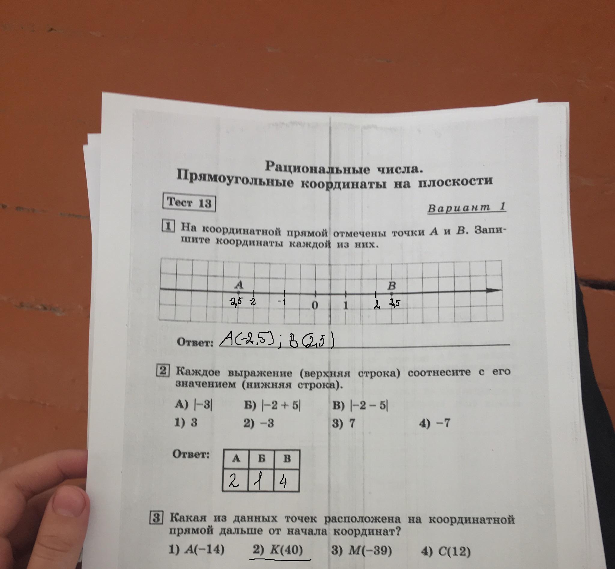 3) т.к. модуль координаты |40|=40 она находится дальше всех от начала координат.