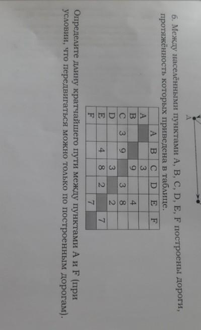 Ответ: Длина кратчайшего пути между пунктами A в F составляет 15 км.
