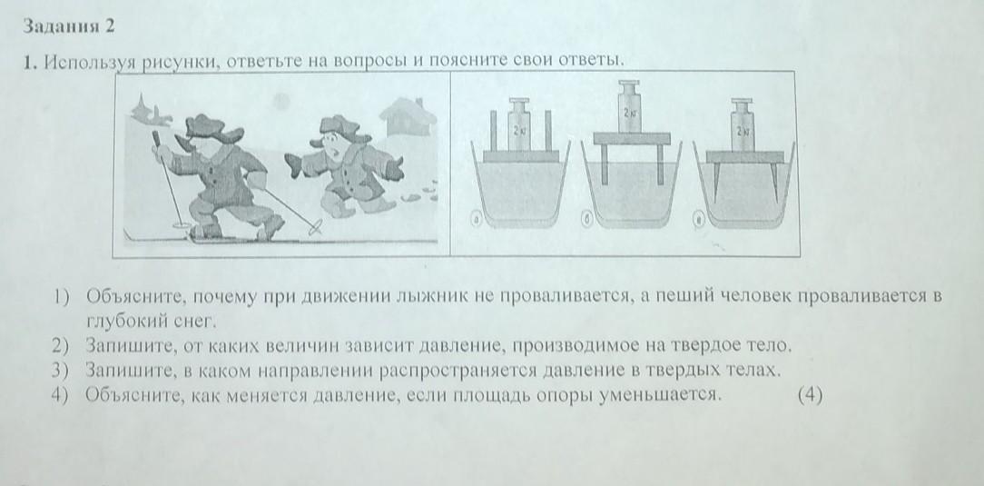 1)действие одного тела на другое.Следовательно сила с которой человек давит на снег распределяется по всей площади лыж