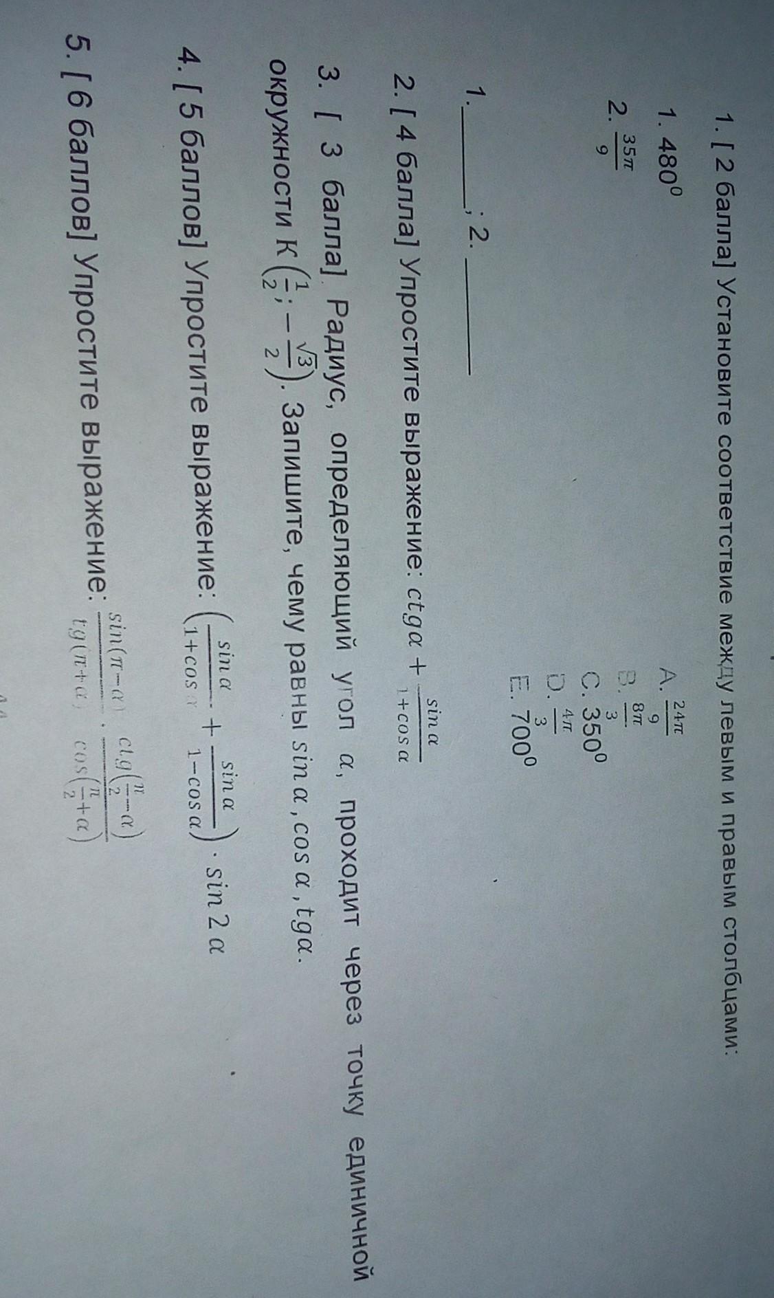 1)35p/9=35*180/9=700, E, 24p/9=24*180/9=480, A