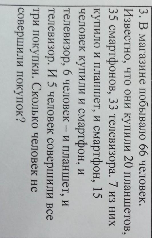 Из 66 посетителей магазина х человек купили 20 планшетов (П), 35 смартфонов (С), 33 телевизора (Т).
