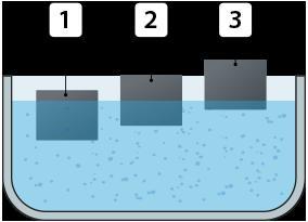 На поверхности морской воды плавают бруски из берёзы, пробки и парафина. Укажи, какой брусок из берёзы.