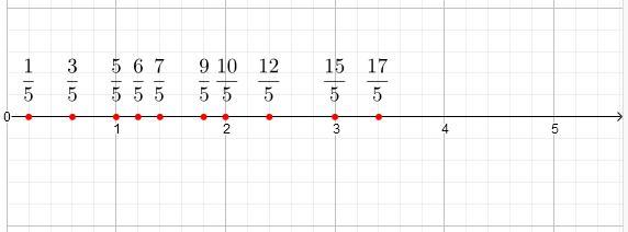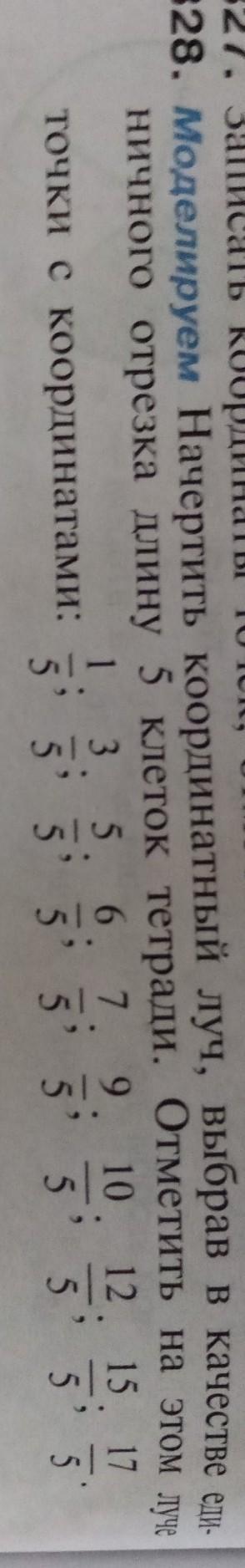 Начертить координатный луч, выбрать в качестве единичного отрезка длину 5 клеток тетради. Отметить на этом луче точки с координатами:
