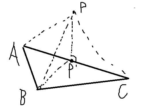 Точка P удалена от всех вершин прямоугольного треугольника на расстояние 2a, а от его плоскости - на расстояние a. Найдите медиану треугольника, проведённую из вершины прямого угла? (можно пожалуйста с чертежом?())