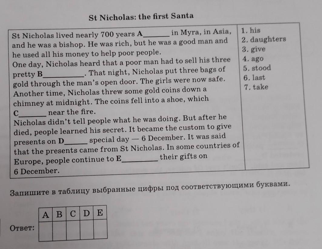 Ответ: A-4, B-2, C-5, D-1, E-3