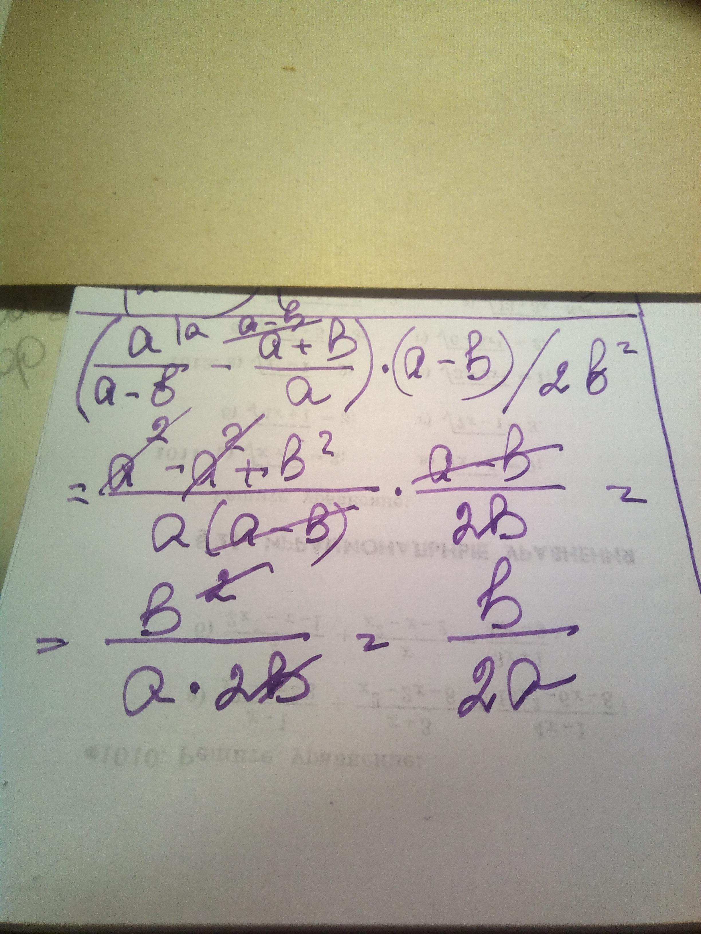 (a/(a-b))-(a+b)/a)*(a-b)/2b=
