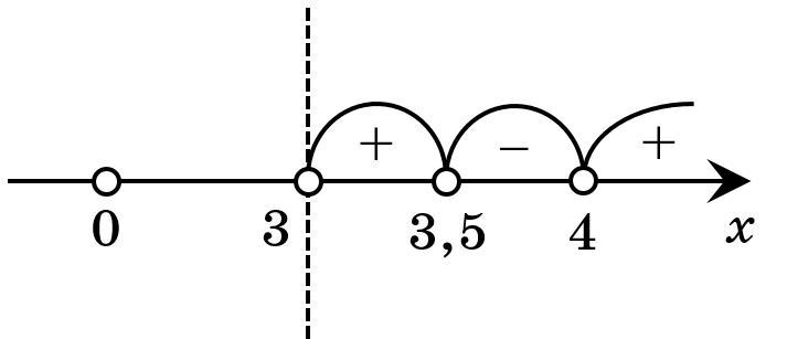 3) Разобьем область определения на промежутки, каждый из концов которого является корнем уравнения или конечной точкой промежутка определения функции