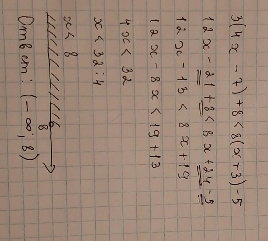 3(4х-7)+8<8(х+3)-5