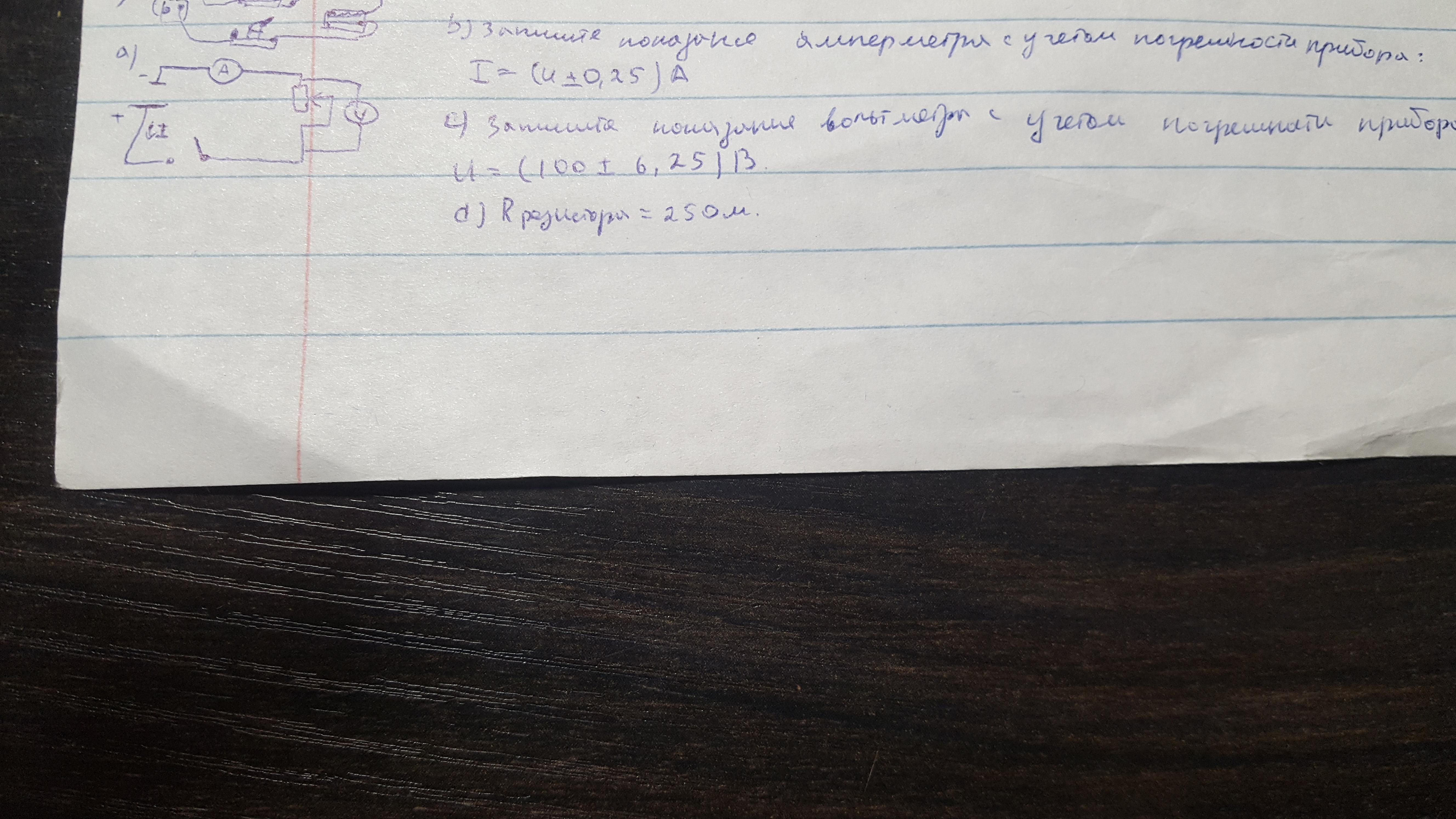 с) Запишите показания вольтметра с учётом погрешности прибора.