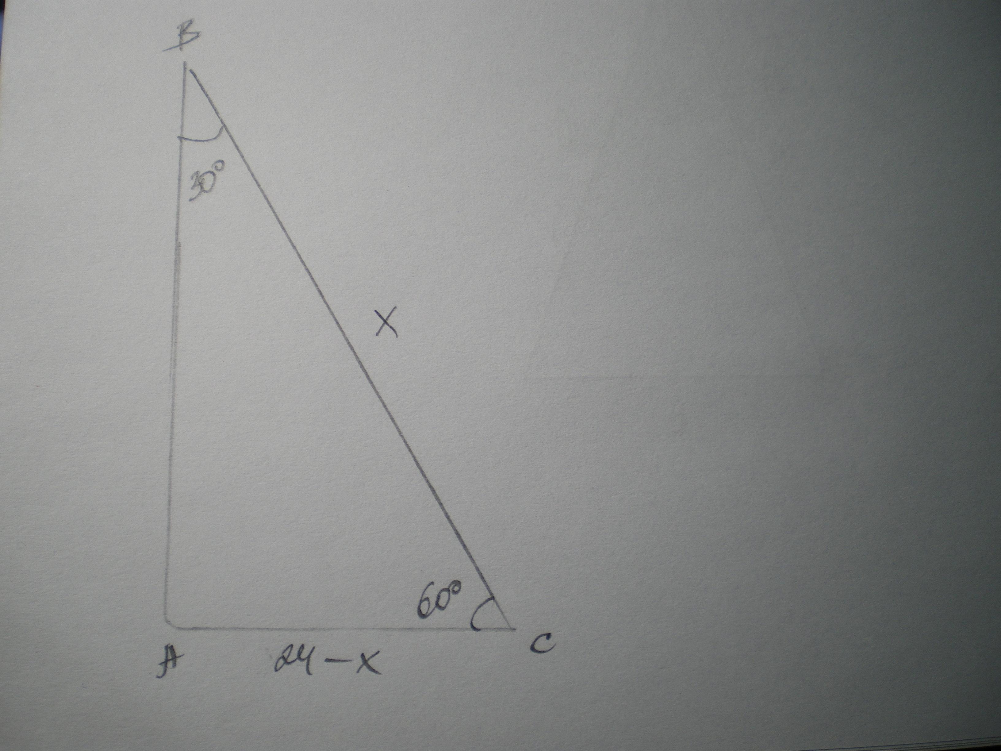 Дано: ΔАВС, ∠С=60°, ВС+АС=24 см. Найти ВС.