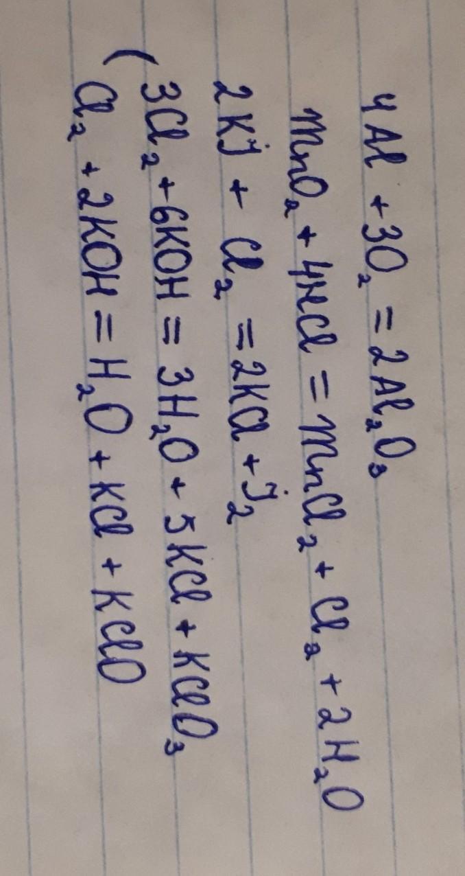 3Cl2 + 5KOH =KClO3 + 5KCl + 3H2O