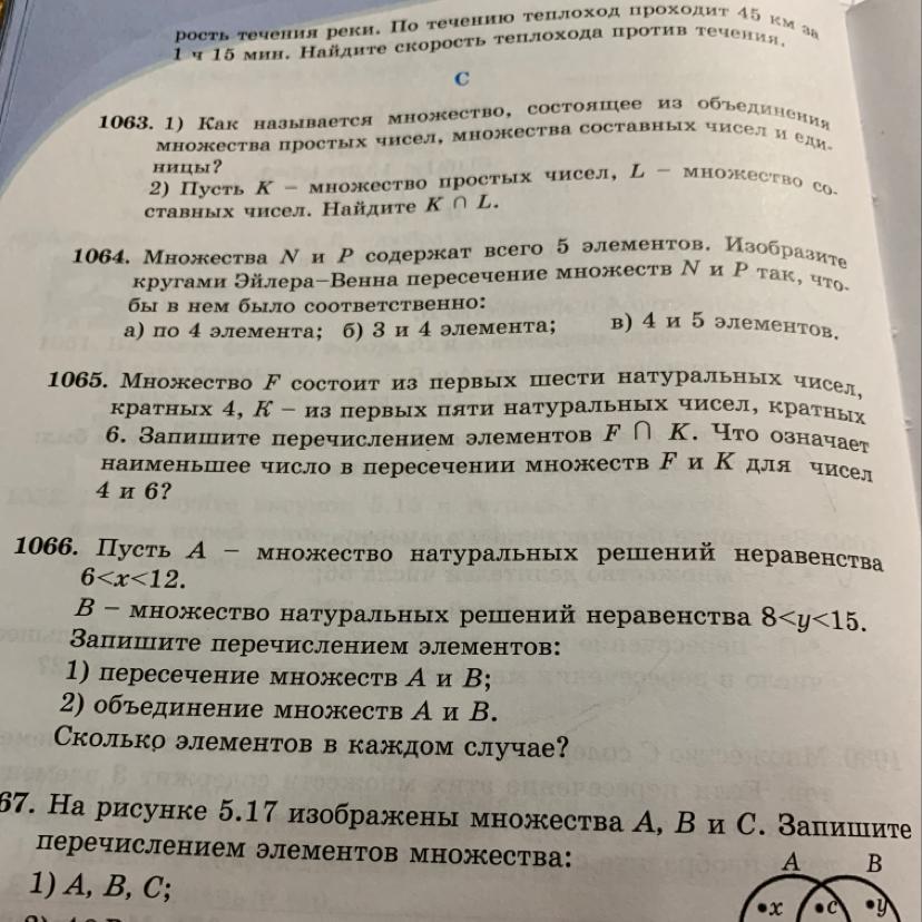 Пересечение - это нахождение общих элементов двух множеств, объединение - это объедение всех элементов двух множеств в одно